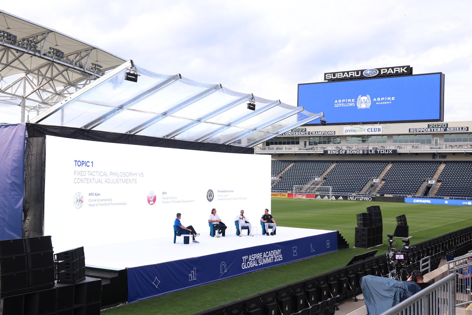 انطلقت فعاليات قمة أكاديمية أسباير العالمية 2025 في ملعب سوبارو بارك، معقل نادي فيلادلفيا يونيون، في حدث تاريخي يُقام للمرة الأولى في الولايات المتحدة الأمريكية، وسط مشاركة واسعة من خبراء ومدربين ومسؤولين يمثلون نخبة من المؤسسات الرياضية العالمية. جاء تنظيم القمة هذا العام بالتعاون بين أكاديمية أسباير، ونادي فيلادلفيا يونيون، ورابطة الدوري الأمريكي لكرة القدم (MLS)، في خطوة تعكس اتساع نطاق تأثير المبادرة التعليمية والرياضية التي تقودها الأكاديمية القطرية حول العالم. وشهد اليوم الافتتاحي حضور أكثر من 400 مشارك من المدربين وخبراء الأداء وأعضاء برنامج زملاء أسباير حول العالم، إلى جانب ممثلين عن الأندية الأمريكية المحلية، وطلاب مركز أكاديمية YSC للشباب، الذين شاركوا في الحصص التدريبية العملية التي أُدرجت لأول مرة ضمن برنامج القمة هذا العام. افتُتح الحدث بكلمة ألقاها ريتشـي جراهام، مؤسس أكاديمية YSC والمستثمر في نادي فيلادلفيا يونيون، الذي أكد أهمية التعليم والتعاون في تطوير كرة القدم قائلاً: "إن مستقبل كرة القدم واعد، وهذا الحضور الكبير في قمة أسباير دليل على الرغبة في التعلم وتبادل المعرفة. التعليم والتعاون هما الطريق لصناعة الجيل القادم من اللاعبين والقادة في اللعبة." كما رحّب عبدالله ناصر النعيمي، الرئيس التنفيذي بالإنابة لمؤسسة أسباير زون، بالمشاركين، مؤكداً أن القمة تجسد رؤية الأكاديمية في بناء الرياضي المتكامل معرفياً وشخصياً، مضيفاً: "هدفنا ليس فقط إعداد لاعبين مميزين، بل تكوين شخصيات قيادية تفهم قيم اللعبة ودورها المجتمعي. فالمعرفة والشخصية عنصران لا يقلان أهمية عن الموهبة." وفي كلمة مسجلة، شدّد إيفان برافو، المدير العام لأكاديمية أسباير، على أن القمة تهدف إلى تعزيز الحوار وتبادل الخبرات بين المدربين من مختلف الثقافات، مشيراً إلى أن برنامج زملاء أسباير حول العالم صُمم خصيصاً لدعم المدربين والكوادر الفنية ومساعدتهم على التعلم المستمر والتطور. استهل برنامج القمة بجلسة "ماستر كلاس" قدمها المدرب الإسباني رافائيل بينيتيز، المدير الفني السابق لليفربول وريال مدريد ونابولي، بمشاركة مساعده الفني فرانسيسكو دي ميجيل مورينو، حيث تطرقا إلى التطورات الحديثة في تحليل الأداء الرياضي واستخدام البيانات وأنظمة التتبع (GPS) في تحسين العمل الفني، مع التأكيد على أهمية نقل مفاهيم التدريب الاحترافي إلى فئات الشباب. ثم تلتها جلسة حوارية مميزة مع السير جاريث ساوثجيت، المدير الفني السابق لمنتخب إنجلترا، الذي تحدث عن مسيرته وتجربته في التعامل مع الضغوط والتحديات، مؤكداً أن: "تطوير المدربين هو أساس تطوير اللعبة، فالتعلم لا يتوقف مهما طال بنا الزمن في المهنة. القمم مثل هذه هي بيئة مثالية للنمو وتبادل الخبرات." كما شهد اليوم الأول جلسة أخرى مع ويلفريد نانسي، مدرب نادي كولومبوس كرو، الذي تحدث عن فلسفته في التدريب المرتكزة على الشفافية وبناء الثقة، قائلاً: "التدريب ليس مجرد تعليم تكتيكي، بل هو عملية إنسانية تقوم على الوضوح والمرونة وتمكين اللاعبين من اتخاذ القرار وتحمل المسؤولية." أعقب ذلك تطبيق عملي ميداني مع طلاب أكاديمية YSC بإشراف نانسي وبرادلي كارنيل، ما أتاح للمشاركين اختبار المفاهيم النظرية ضمن بيئة تدريبية حقيقية. وفي حفل العشاء الرسمي الذي أقيم مساء الثلاثاء، شارك دون جاربر، مفوض دوري كرة القدم الأمريكي (MLS) وضيف الشرف، في حوار مفتوح مع النجم الدولي السابق جون هاركس، استعرض خلاله رحلته في تأسيس نظام كرة القدم الاحترافية في الولايات المتحدة بعد كأس العالم 1994، مؤكداً أن القمم مثل أسباير العالمية "تلعب دوراً محورياً في جمع الأفكار وتوحيد الرؤى لتطوير اللعبة". وقدّمت أكاديمية أسباير درعاً تذكارياً لجاربر تكريماً لمساهمته في دعم تطور كرة القدم الأمريكية، كما تم تكريم عدد من الشركاء، بينهم جاي شوجارمان مالك نادي فيلادلفيا يونيون، وريتشـي جراهام، وألفونسو مو