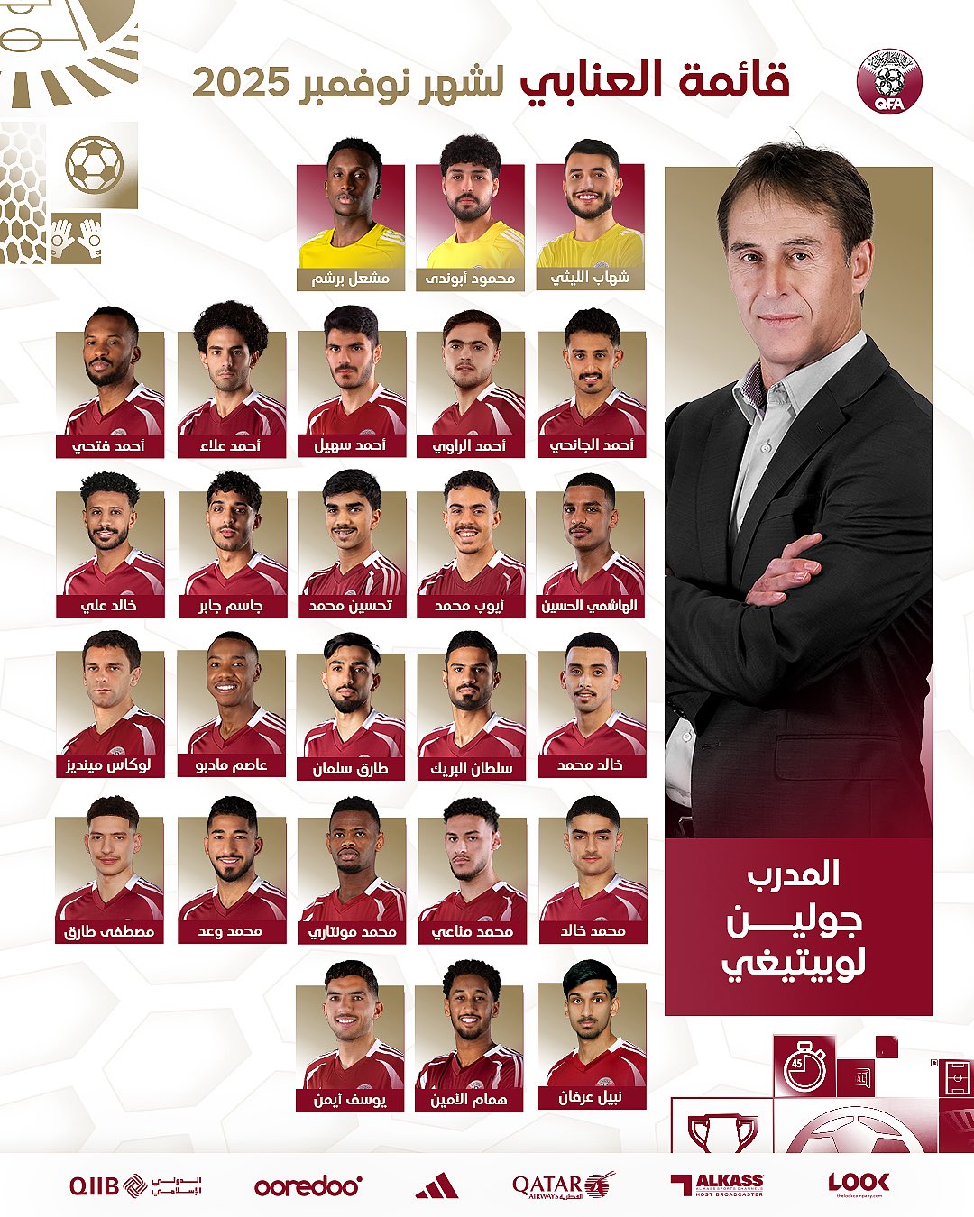أعلن الإسباني جولين لوبيتيجي، المدير الفني للمنتخب القطري الأول لكرة القدم، قائمة اللاعبين المدعوين لخوض المباراة الودية أمام منتخب زيمبابوي، والمقررة يوم 17 نوفمبر الجاري على استاد عبد الله بن خليفة بنادي الدحيل، في إطار التحضيرات لخوض منافسات بطولة كأس العرب قطر 2025، التي تستضيفها الدوحة خلال الفترة من 1 إلى 18 ديسمبر المقبل. وضمّت القائمة 26 لاعبًا، من بينهم ثلاثة حراس مرمى هم: مشعل برشم، ومحمود أبوندى، وشهاب الليثي. إلى جانب اللاعبين: أحمد الجانحي، وأحمد الراوي، وأحمد سهيل، وأحمد فتحي، وأحمد علاء، والهاشمي الحسين، وأيوب محمد، وتحسين محمد، وجاسم جابر، وخالد علي، وخالد محمد، وسلطان البريك، وطارق سلمان، وعاصم مادبو، ولوكاس منديز، ومحمد خالد، ومحمد مناعي، ومحمد مونتاري، ومحمد وعد، ومصطفى طارق، ونبيل عرفان، وهمام الأمين، ويوسف أيمن. وشهدت القائمة غياب عدد من الأسماء البارزة التي مثّلت عناصر أساسية في مشوار المنتخب خلال التصفيات المؤهلة إلى كأس العالم 2026، من بينهم: المعز علي، أكرم عفيف، إدميلسون جونيور، بيدرو ميجيل، بوعلام خوخي، كريم بوضياف، وعبدالعزيز حاتم، حيث فضّل الجهاز الفني منحهم فترة راحة استعدادًا للاستحقاقات المقبلة. وتأتي المواجهة أمام زيمبابوي ضمن سلسلة المباريات الودية التي يعتمدها لوبيتيجي لاختبار وجوه جديدة وعناصر شابة برزت في دوري نجوم أريدُ خلال الأشهر الماضية، في إطار بناء توليفة متجانسة تجمع بين الخبرة والطموح استعدادًا للبطولة العربية. يُذكر أن قرعة بطولة كأس العرب قطر 2025 أوقعت المنتخب القطري في المجموعة الأولى إلى جانب منتخبات: تونس، والفائز من مباراة سوريا وجنوب السودان، وفلسطين، وليبيا، حيث يسعى «العنابي» إلى المنافسة بقوة على اللقب الذي يقام على أرضه وبين جماهيره.
