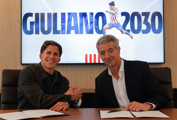 أعلن نادي أتلتيكو مدريد الإسباني عن تجديد عقد لاعبه جوليانو سيميوني، نجل المدير الفني دييجو سيميوني، لمدة عامين إضافيين، ليستمر بقميص الروخي بلانكوس حتى صيف عام 2030. وأوضح النادي في بيان رسمي أن العقد الجديد يمتد حتى 30 يونيو 2030، بعدما كان من المقرر أن ينتهي التعاقد السابق في عام 2028، في خطوة تؤكد ثقة الإدارة في قدرات اللاعب الشاب. وأشار البيان إلى أن جوليانو سيميوني، البالغ من العمر 23 عامًا، يرتدي قميص أتلتيكو مدريد منذ عام 2019، حيث تدرج بنجاح في فرق أكاديمية النادي حتى صيف 2022. وكان عنصرًا أساسيًا في فريق الشباب الذي تُوّج بالمجموعة الخامسة من دوري الدرجة الأولى خلال موسم 2020-2021، كما سجل ظهوره الأول مع الفريق الأول في الموسم ذاته. وفي موسم 2021-2022، واصل اللاعب تألقه مع الفريق الرديف، إذ شارك في 36 مباراة وأحرز 24 هدفًا، ليتصدر قائمة هدافي مجموعته في دوري الدرجة الثالثة الإسباني، ويساهم بشكل كبير في صعود الفريق. كما خاض أولى مبارياته مع الفريق الأول في أبريل 2022 أمام غرناطة في الدوري الإسباني. وعزز جوليانو خبراته من خلال فترتي إعارة إلى ريال سرقسطة في موسم 2022-2023، وديبورتيفو ألافيس في موسم 2023/2024، قبل أن يعود ليستقر ضمن صفوف الفريق الأول بشكل نهائي. ومنذ عودته، خاض 77 مباراة خلال موسم ونصف، سجل خلالها 8 أهداف وصنع 16 تمريرة حاسمة، ليحظى بإعجاب جماهير أتلتيكو بفضل قتاليته وروحه العالية داخل الملعب.