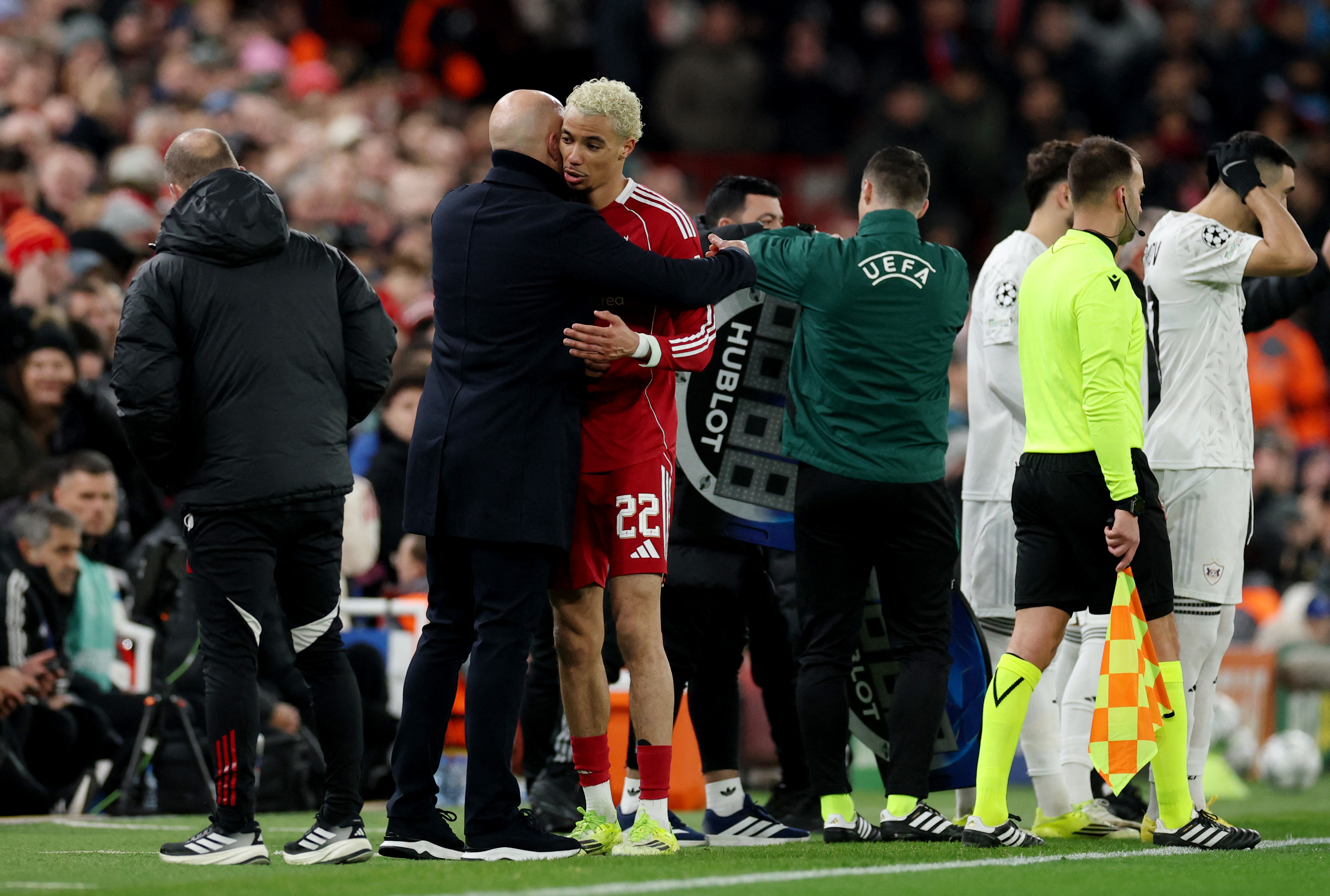أبدى هوجو إيكيتيكي، لاعب فريق ليفربول الإنجليزي لكرة القدم، سعادته بالانتقال للعب في إنجلترا، لكنه اعترف بأنه لا يزال يتعين عليه تقديم المزيد. وأحرز النجم الدولي الفرنسي هدفه الـ13 هذا الموسم خلال فوز ليفربول الساحق 6-صفر أمام كاراباخ الأذربيجاني، والذي ضمن للفريق مقعدا بدور الـ16 في بطولة دوري أبطال أوروبا. وبعد أن بدأ الموسم بثلاثة أهداف في ثلاث مباريات، احتاج إيكيتيكي إلى 17 مباراة أخرى لمضاعفة هذا الرصيد، لكنه سجل سبعة أهداف في 11 مباراة منذ 6 ديسمبر الماضي. وكانت هذه الأهداف مهمة بالنسبة له، لاسيما وأنه يتحمل حاليا عبء غياب السويدي ألكسندر إيساك، صاحب أغلى صفقة انتقال في بريطانيا، والذي غاب لمدة خمسة أسابيع عن الملاعب، ومن المتوقع أن يغيب لمدة شهر آخر على الأقل بسبب كسر في الساق. وكان إيكيتيكي انضم لليفربول في فترة الانتقالات الصيفية الماضية قادما من آينتراخت فرانكفورت الألماني في صفقة بلغت قيمتها 79 مليون جنيه إسترليني (109 ملايين دولار). وقام اللاعب بتقييم موسمه الأول مع ليفربول، حيث قال "أعتقد أنه جيد، بالتأكيد، كان بإمكاني تقديم أداء أفضل، وكان بإمكاني تقديم أداء أسوأ، أنا سعيد جدا". يذكر أن ليفربول (حامل اللقب) يتواجد في المركز السادس حاليا بترتيب الدوري الإنجليزي برصيد 36 نقطة من 23 مباراة، بفارق 14 نقطة خلف أرسنال (المتصدر).