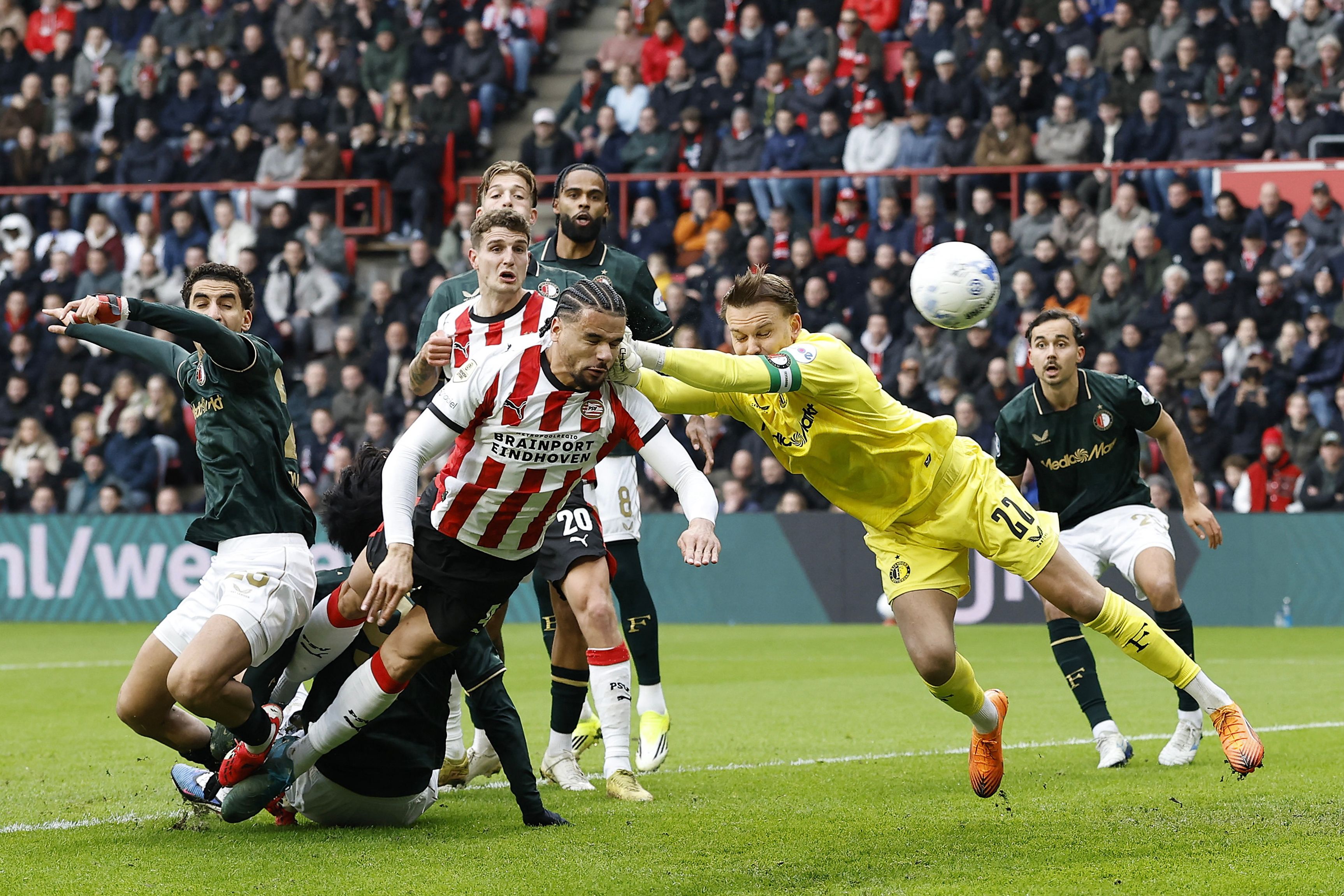 عزز أيندهوفن صدارته للدوري الهولندي لكرة القدم، وذلك بعد فوزه على ضيفه فينورد 3-صفر، في قمة مباريات الجولة 21 من المسابقة. ورفع أيندهوفن رصيده إلى 56 نقطة في المركز الأول، بفارق 17 نقطة عن فينورد صاحب المركز الثاني، ليبتعد أيندهوفن في الصدارة. وجاء الفوز الكبير على حساب فينورد في توقيت مناسب لأيندهوفن، وذلك بعد خروج الفريق من مرحلة الدوري بدوري أبطال أوروبا بعد احتلاله المركز الثامن والعشرين وفشله في احتلال أي مركز مؤهل لملحق دور الـ16، وخسارته في الجولة الأخيرة على ملعبه أمام بايرن ميونيخ الألماني 2-1 على الجانب الآخر، جاءت الهزيمة لتزيد من أوجاع فينورد الذي خرج أيضا من مرحلة الدوري بالدوري الأوروبي، وفقد فرصة المنافسة في البطولات القارية في الموسم الجاري. وتقدم أيندهوفن في الدقيقة العاشرة عن طريق أرماندو أوبيسبو، وبعده بثلاث دقائق سجل جوس تيل الهدف الثاني. وفي الدقيقة 17 أكمل إسماعيل صيباري ثلاثية أيندهوفن المبكرة في شباك منافسه، الذي عانى من النقص العددي بعد طرد لاعبه جونزالو بورجيس في الدقيقة 84 وضمن منافسات الجولة ذاتها، فاز هيراكليس على فورتونا سيتارد 1-2 وتقدم هيراكليس في الدقيقة 26 عن طريق أيدن هروسيتش، ثم أدرك فورتونا سيتارد التعادل عن طريق كاي سيرهاوس في الدقيقة 37 وفي الدقيقة 44 سجل هيراكليس الهدف الثاني عن طريق أليك فان هورنييك. ورفع هيراكليس رصيده إلى 17 نقطة في المركز السادس عشر، بفارق نقطة واحدة فقط عن مراكز الهبوط، فيما تجمد رصيد فورتونا سيتارد عند 25 نقطة في المركز العاشر.