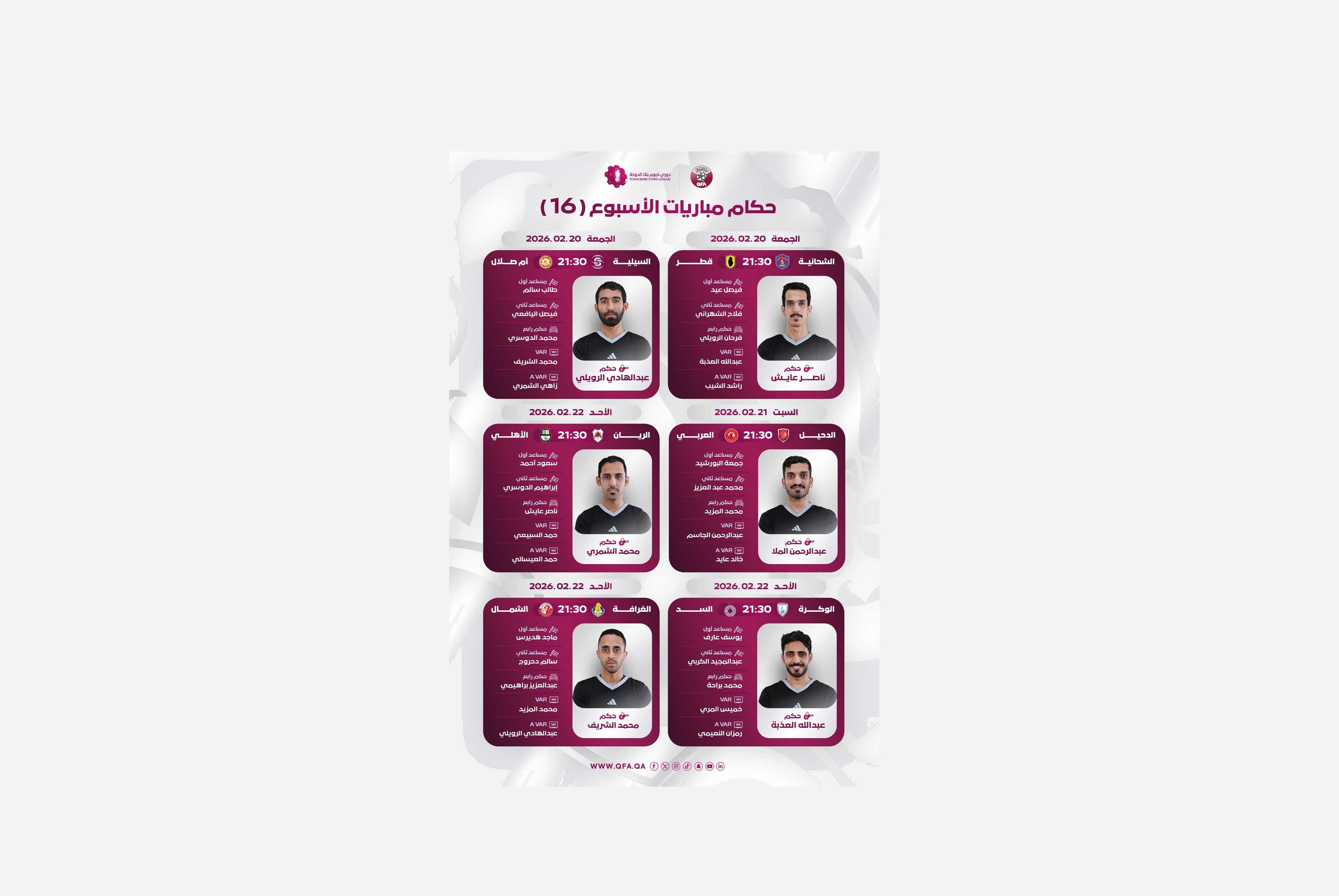 إعلان حكام الجولة الـ16 لدوري قطر